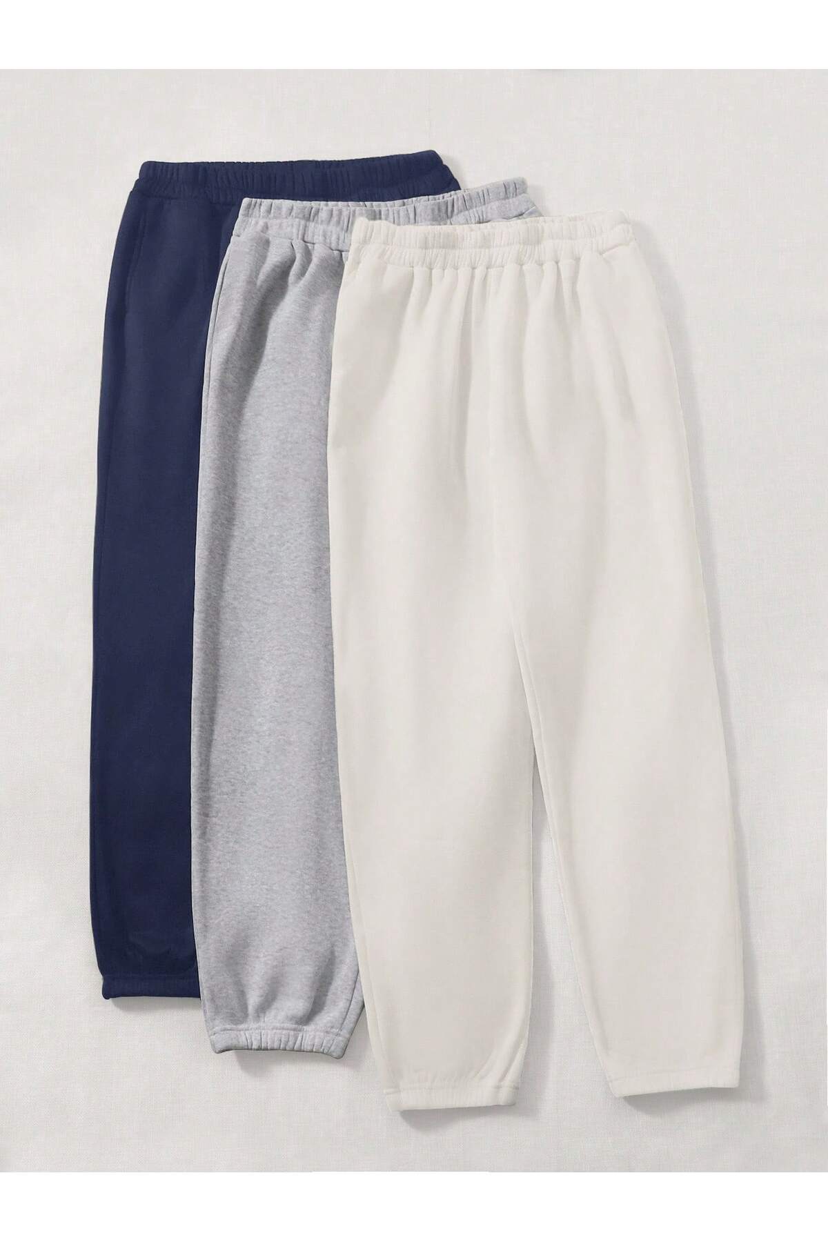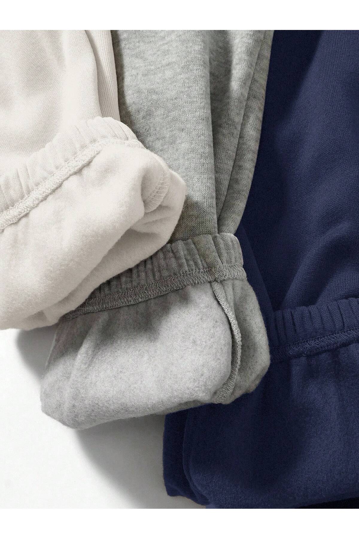 3'lü Jogger Eşofman Altı Lacivert Beyaz Grimelanj Kalın İçi Polarlı