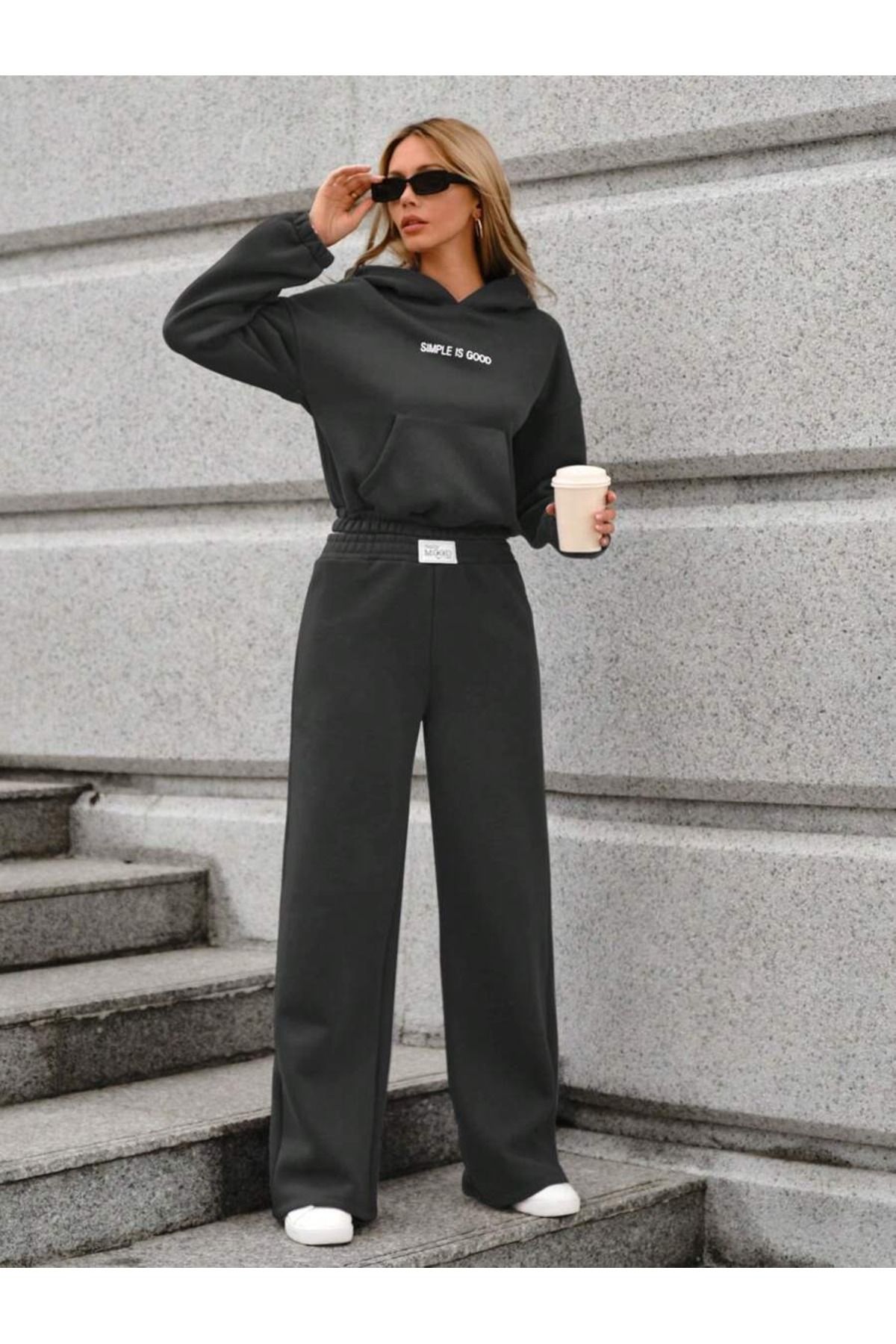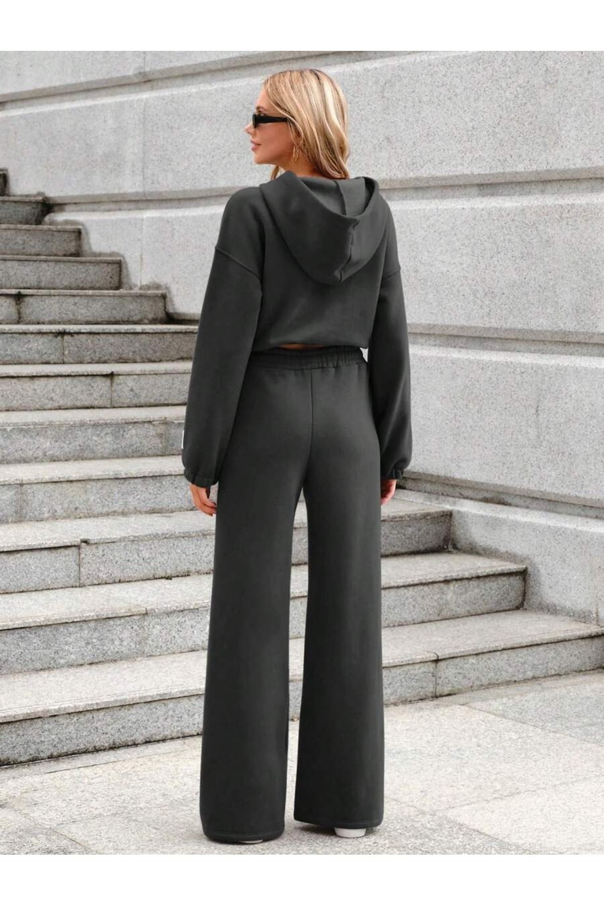 Kadın Kapüşonlu Crop Sweatshirt - Bol Paça Eşofman Takımı