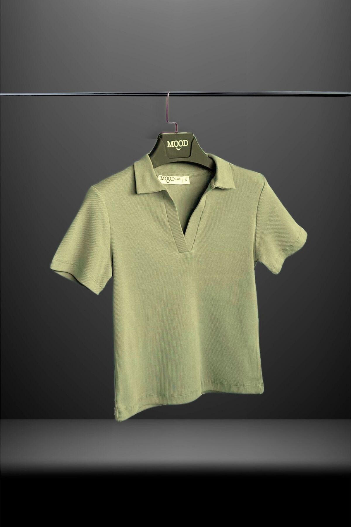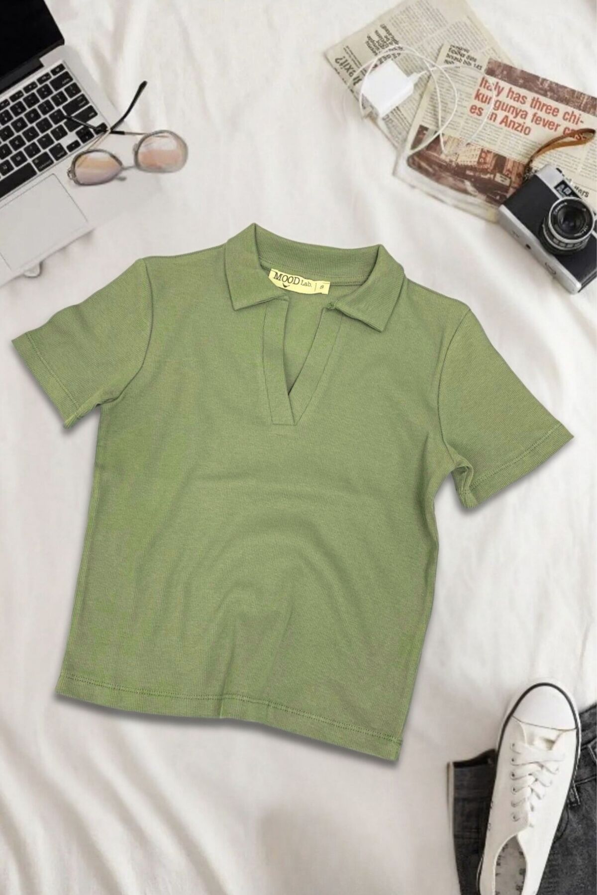 Kadın Polo Yaka Fitilli Kaşkorse Kısa Kollu Tişört