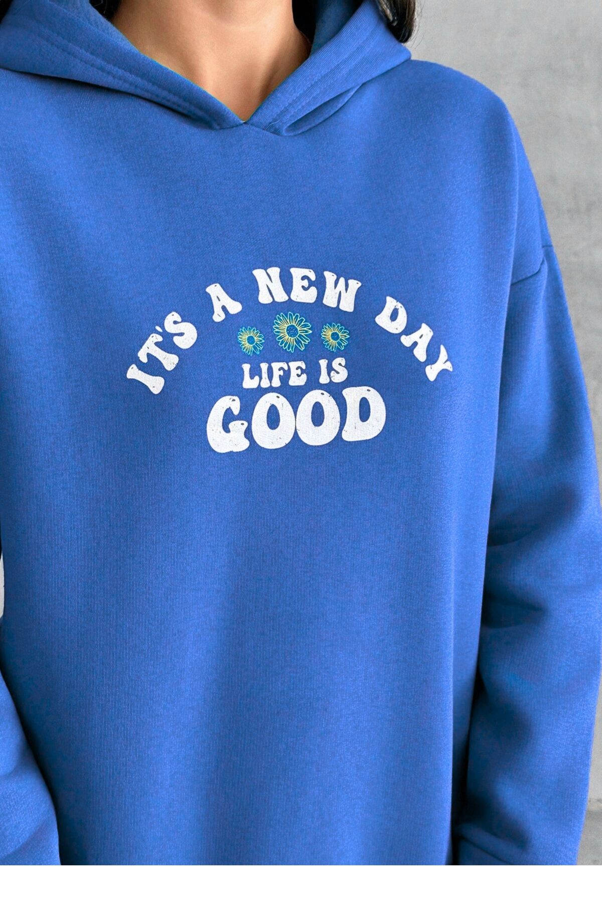 - Kapüşonlu tasarımı ile soğuk kış günlerinde başınızı sıcak tutar ve şık bir görünüm sağlar.; - Grafik baskı tekniği ile öne çıkan slogan deseni, genç ve dinamik bir stil sunar.; - 3 iplik şardonlu dokuma tipi, yumuşak dokusuyla konforlu bir kullanım vaat eder.; - Uzun kollu tasarımı ile kollarınızı soğuktan korurken rahat hareket etme özgürlüğü tanır.; - Relaxed kalıbı sayesinde gün boyu rahat bir kullanım imkanı sunar.; - Örme kumaş tipi, esneklik ve dayanıklılık sağlayarak uzun süreli kullanım için idealdir.; - Türkiye'de üretilmiş olması, yerel üretimden yana olan tercihinizi destekler.;