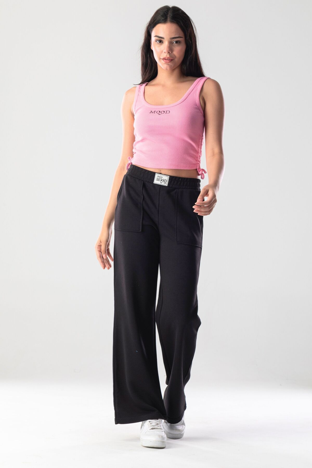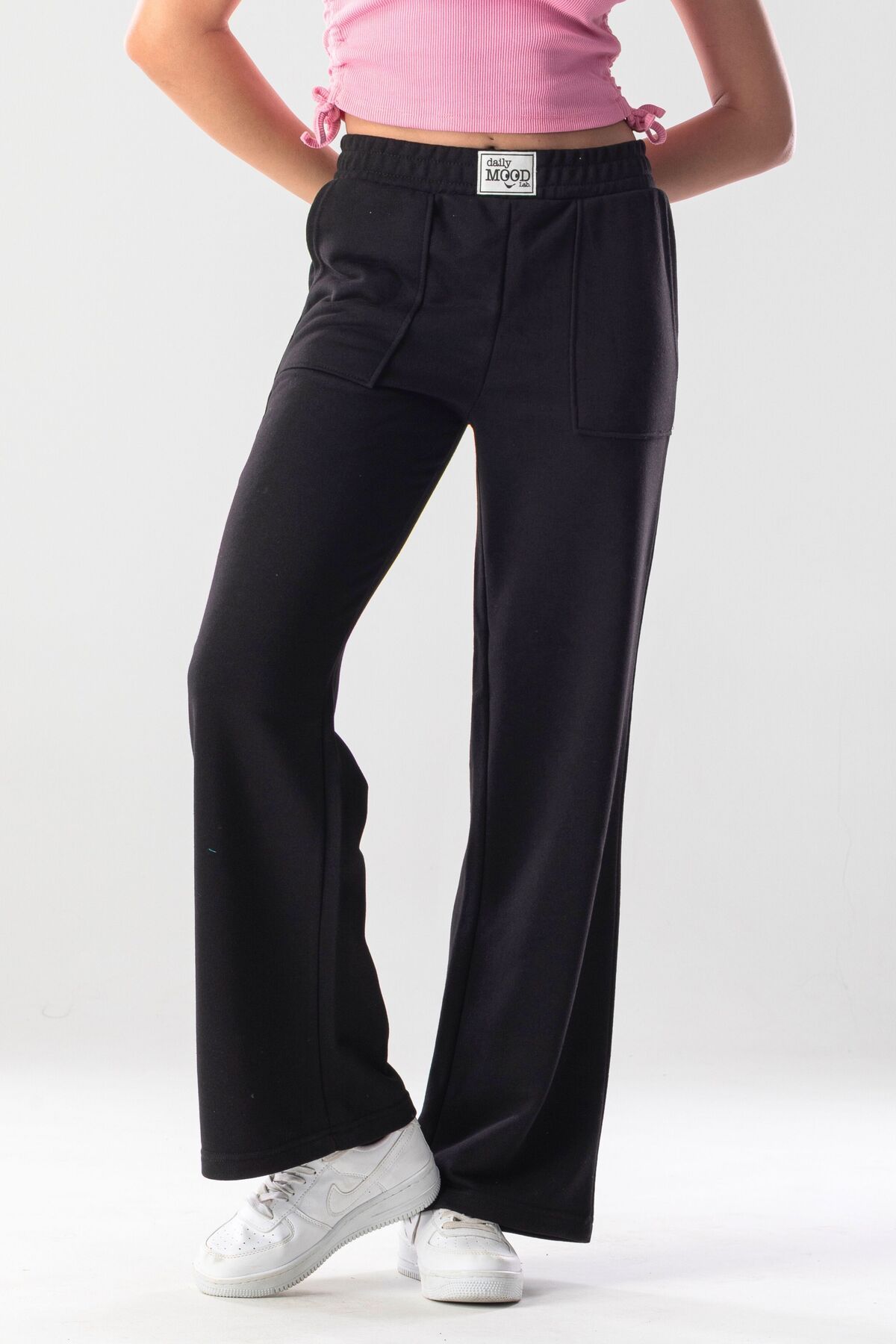 Siyah Cep Detaylı Bol Paça Beli Lastikli Eşofman Altı