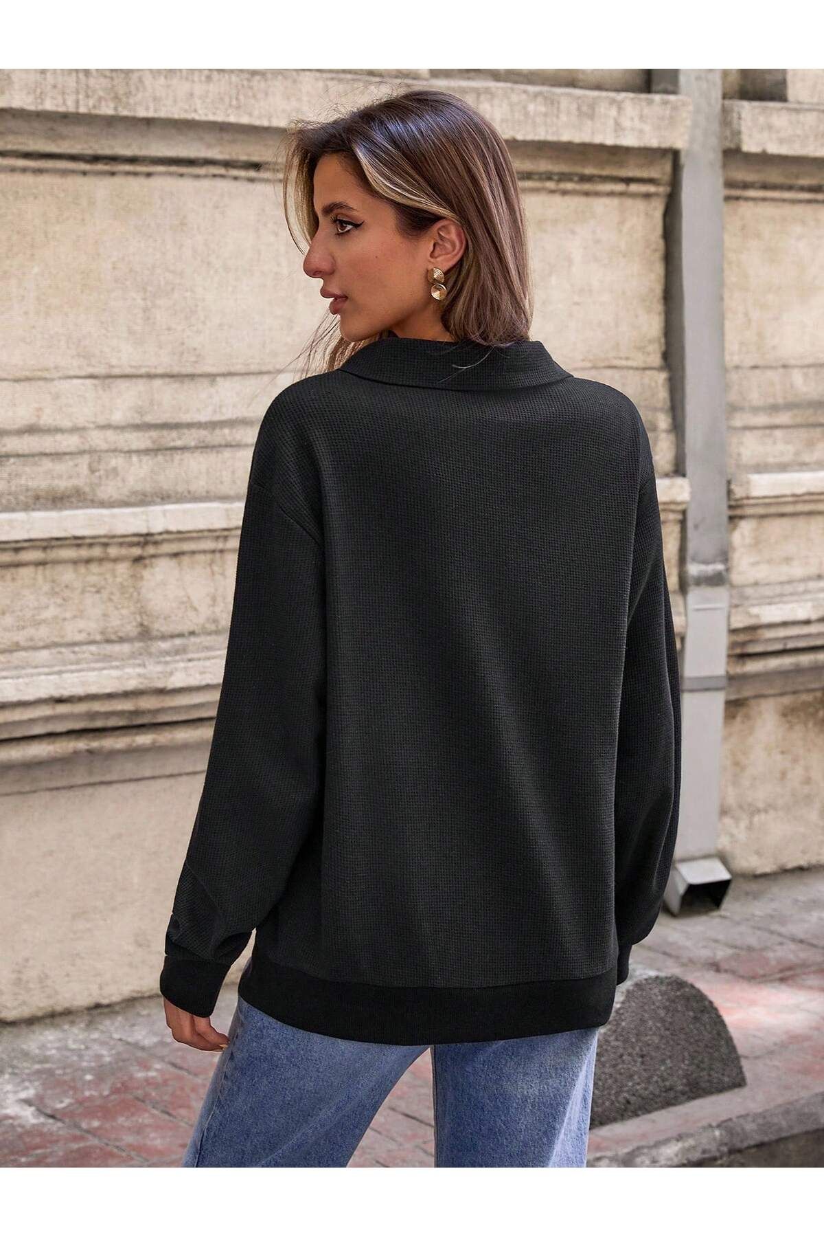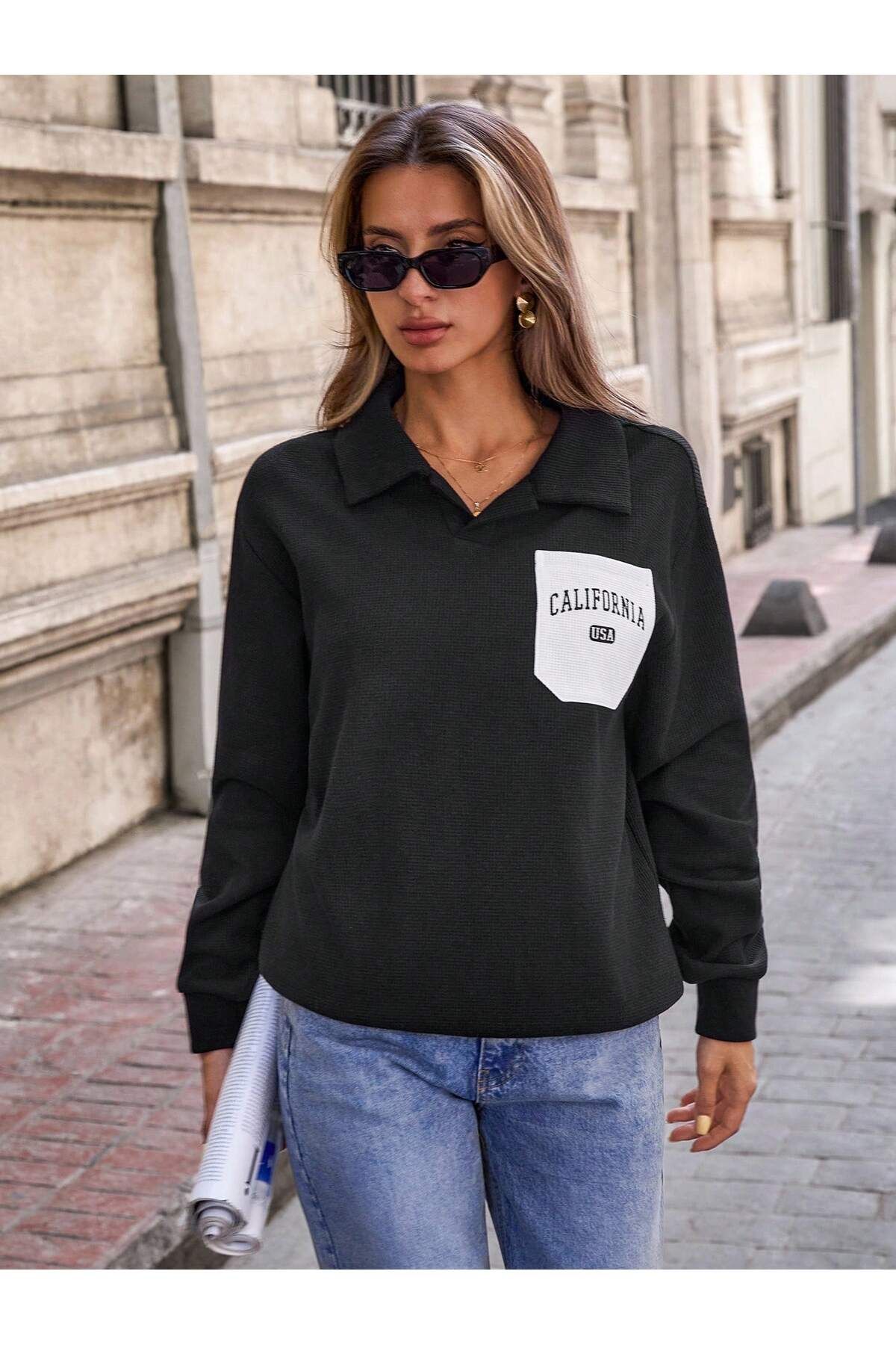 - Siyah polo yaka tasarımı ile modern ve şık bir görünüm sunar.; - Waffle dokuma tipi, dayanıklılığı artırırken konforlu bir kullanım sağlar.; - Tekli paket içeriği sayesinde kolayca tercih edilebilir ve pratik bir seçenektir.; - Fleto cep detayı, günlük eşyalarınız için ekstra alan sunarak fonksiyonellik katar.; - Young persona'ya hitap eden dinamik ve genç tasarım anlayışıyla dikkat çeker.; - Baskılı deseniyle trendleri takip edenlerin beğenisine sunulur.; - Sürdürülebilirlik detayının bulunmaması, çevre dostu alternatifler arayanlar için ideal olmayabilir.; - Regular silueti sayesinde rahat hareket etme özgürlüğü tanır.; - %50 pamuk ve %50 polyester karışımından oluşan materyali cildinizle uyumlu bir dokunuş sağlar.; - 30 derecede yıkama talimatına uygun şekilde bakım yapılabilir; böylece uzun süre ilk günkü gibi kalır.; - Tüm sezonlarda giyilebilen bu sweatshirt, mevsim geçişlerinde de vazgeçilmezdir.; - Ek özellik bulunmadığından basit ama etkili bir stil oluşturmanız mümkündür.; - Türkiye menşeli olması yerel üretim tercihini destekleyerek ülke ekonomisine katkıda bulunur.; - Örme kumaşı esneklik kazandırarak vücut hatlarınıza mükemmel uyum sağlar.; - Kadın/Kız cinsiyetine özel olarak tasarlanmıştır; her yaştan kadınların gardrobunda yerini almayı hak eder.; -Regular boy kesimiyle farklı vücut tiplerine uyum gösterirken rahatlık sunar.; - Polo yaka detayı ile klasikleşmiş tarza modern bir dokunuş katılır.; -Günlük ortamlarda rahatlıkla tercih edebileceğiniz bu parça, konforlu bir şıklık vaad eder.; -Uzun kollu yapısı soğuk havalarda ekstra koruma sağlar.; -Polo yaka tasarımının yanında slogan deseniyle kişisel tarzınıza renk katın.; -Düşük kol tipi sayesinde yaz ayları için idealdir; serin tutar ancak şık duruşundan ödün vermez.