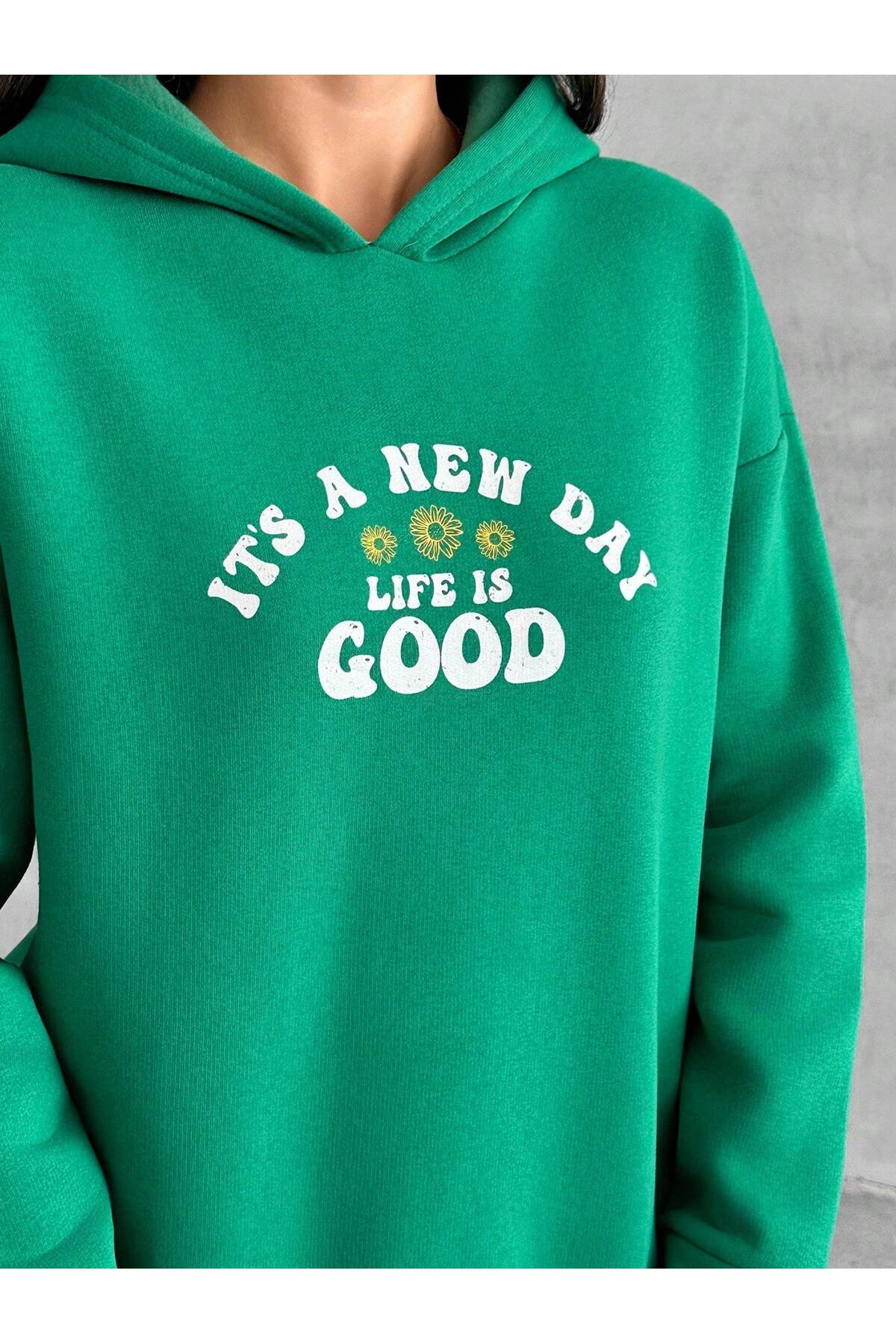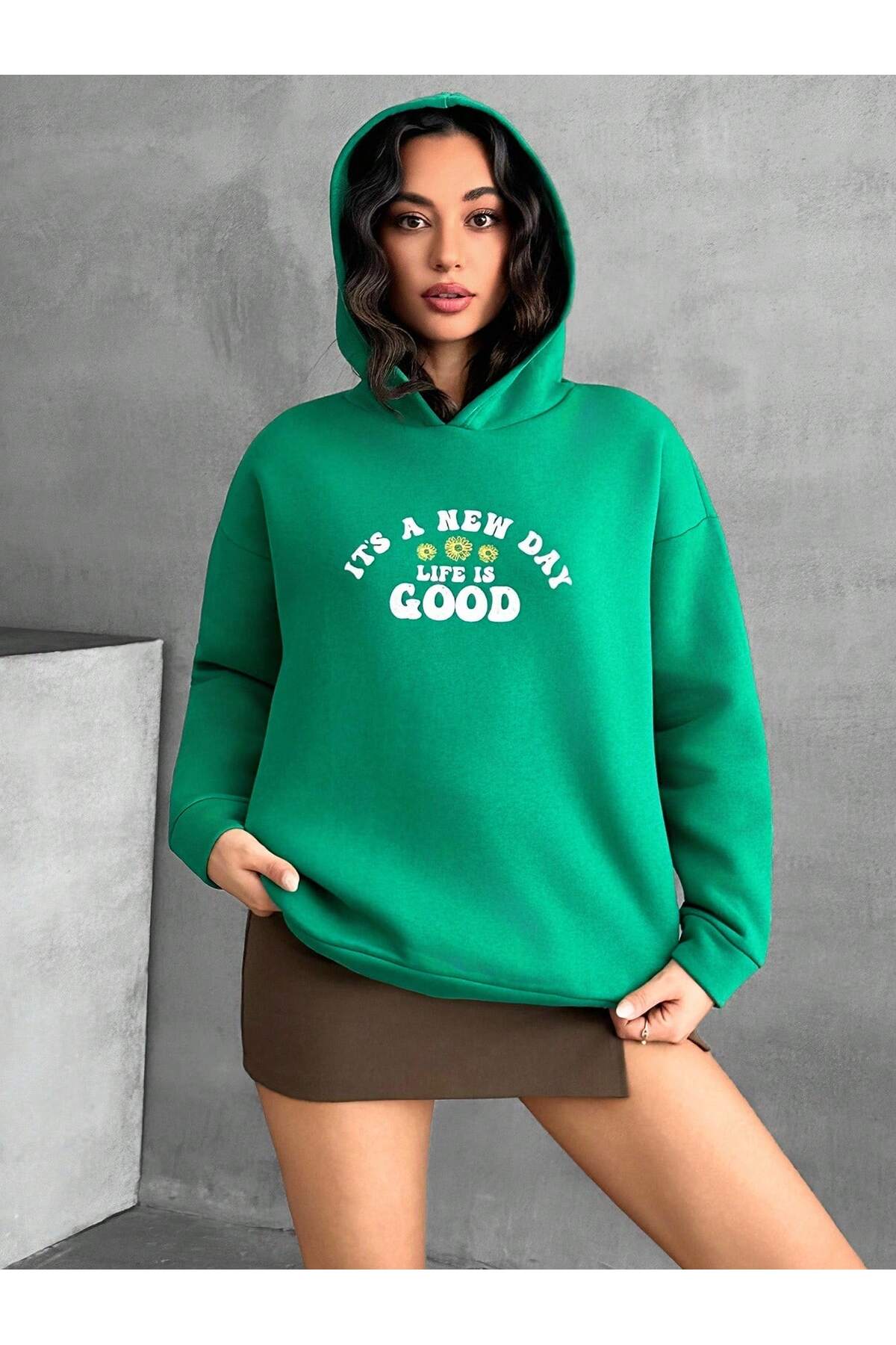 - Kapüşonlu tasarımı ile soğuk kış günlerinde başınızı sıcak tutar ve şık bir görünüm sağlar.; - Grafik baskı tekniği ile öne çıkan slogan deseni, genç ve dinamik bir stil sunar.; - 3 iplik şardonlu dokuma tipi, yumuşak dokusuyla konforlu bir kullanım vaat eder.; - Uzun kollu tasarımı ile kollarınızı soğuktan korurken rahat hareket etme özgürlüğü tanır.; - Relaxed kalıbı sayesinde gün boyu rahat bir kullanım imkanı sunar.; - Örme kumaş tipi, esneklik ve dayanıklılık sağlayarak uzun süreli kullanım için idealdir.; - Türkiye'de üretilmiş olması, yerel üretimden yana olan tercihinizi destekler.;